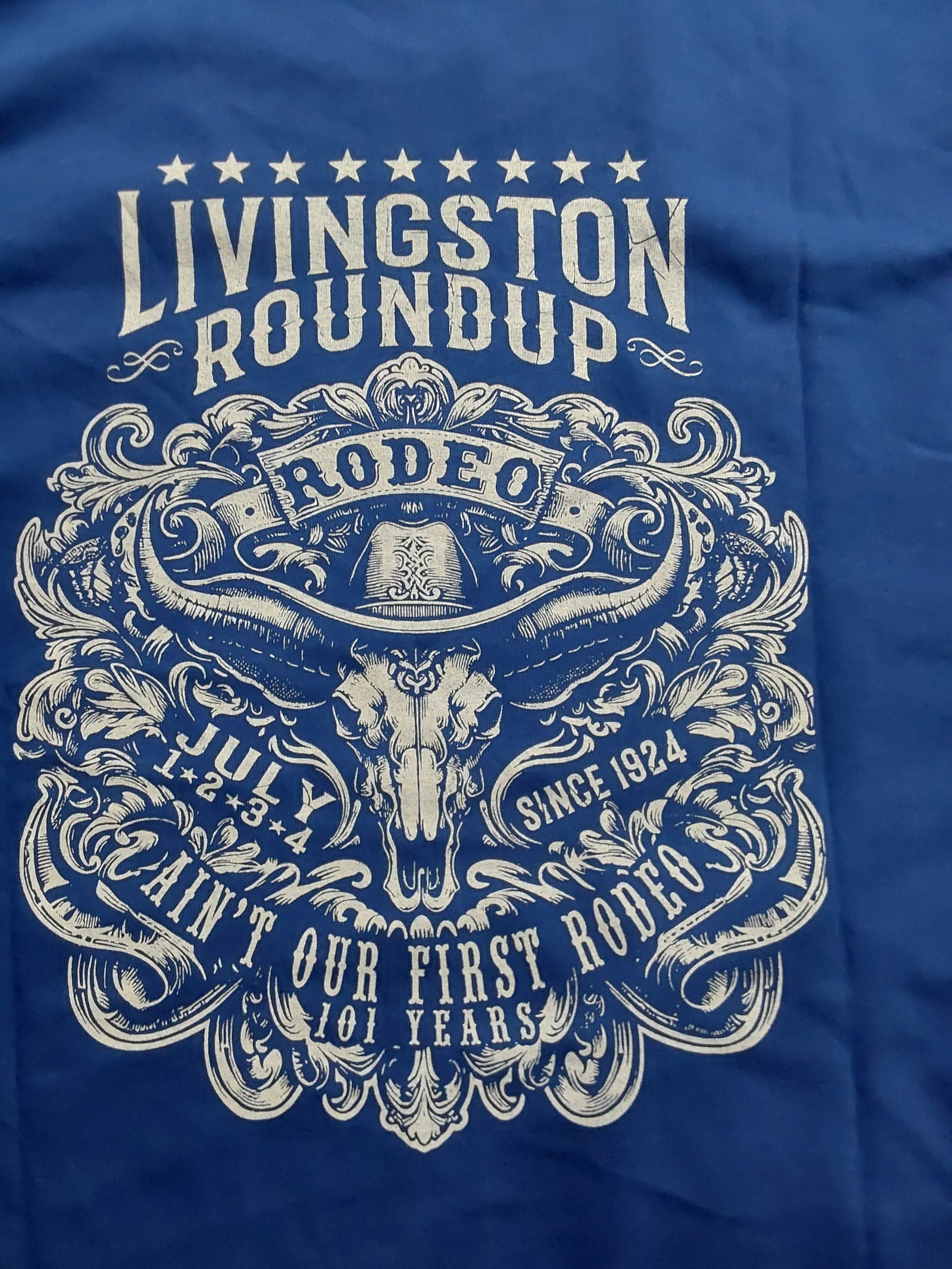 Short sleeved unisex tshirts to commemorate the Livingston Roundup Rodeo.